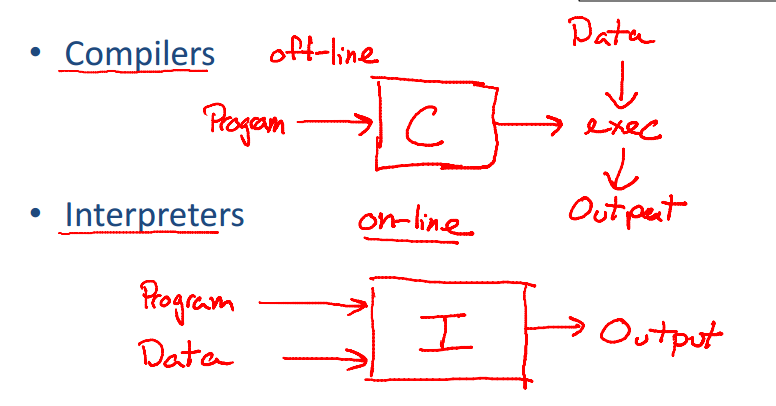 Diferente do compilador o interpretador recebe como estrada uma especificação executável e produz como saída, a execução dessa especificação. Linguagens como PHP, Scheme, Python são interpretadas.